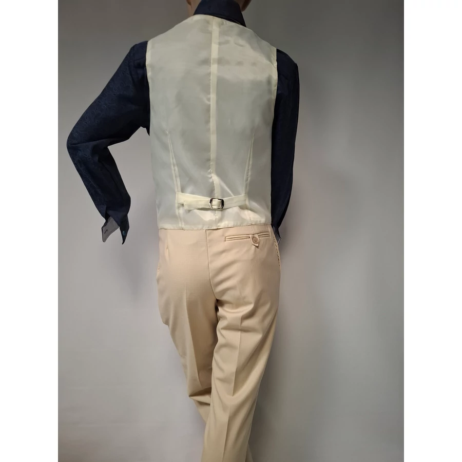 „A stílus nem kor kérdése — a srácoknál is időben kezdődik.” A bézs Slim Fit (karcsúsított) fiú öltöny modern, vagány és letisztult megjelenést ad minden srácnak, aki egy esküvőn stílusosan és magabiztosan szeretne megjelenni. A fazon jól követi a test vonalát, miközben egész nap kényelmes marad. A bézs árnyalat friss, elegáns és fotókon erősen mutat, ezért ideális választás gyűrűvivőknek és ünnepi alkalmakra. A két részes szett könnyen kombinálható világos ingekkel és bézs vagy barna kiegészítőkkel, így a megjelenés egyszerre fiatalos, igényes és ANNBOR‑szinten rendezett.