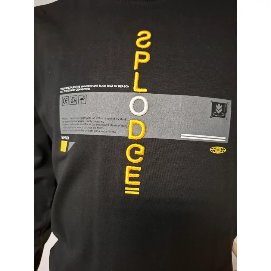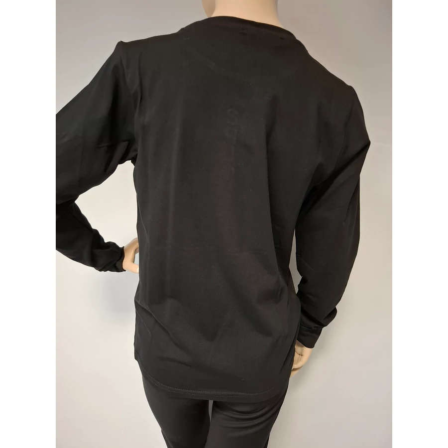 Fekete hosszú ujjú fiú póló rugalmas pamutból, filmnyomással és hímzett részletekkel. Kényelmes, stílusos és egyedi – tökéletes választás kamasz fiúknak az őszi ruhatárba. | |