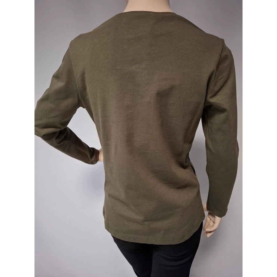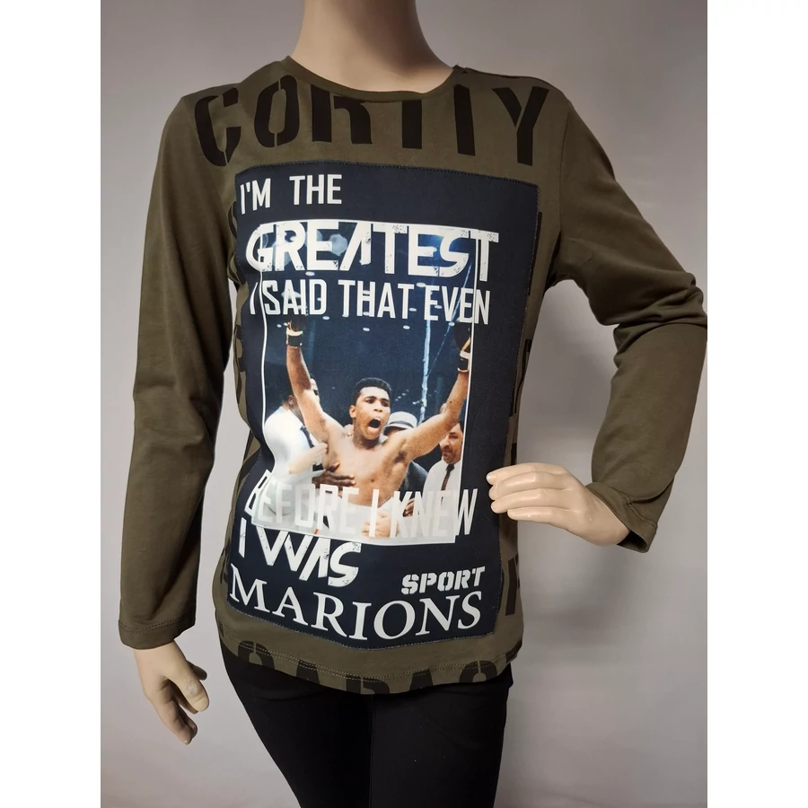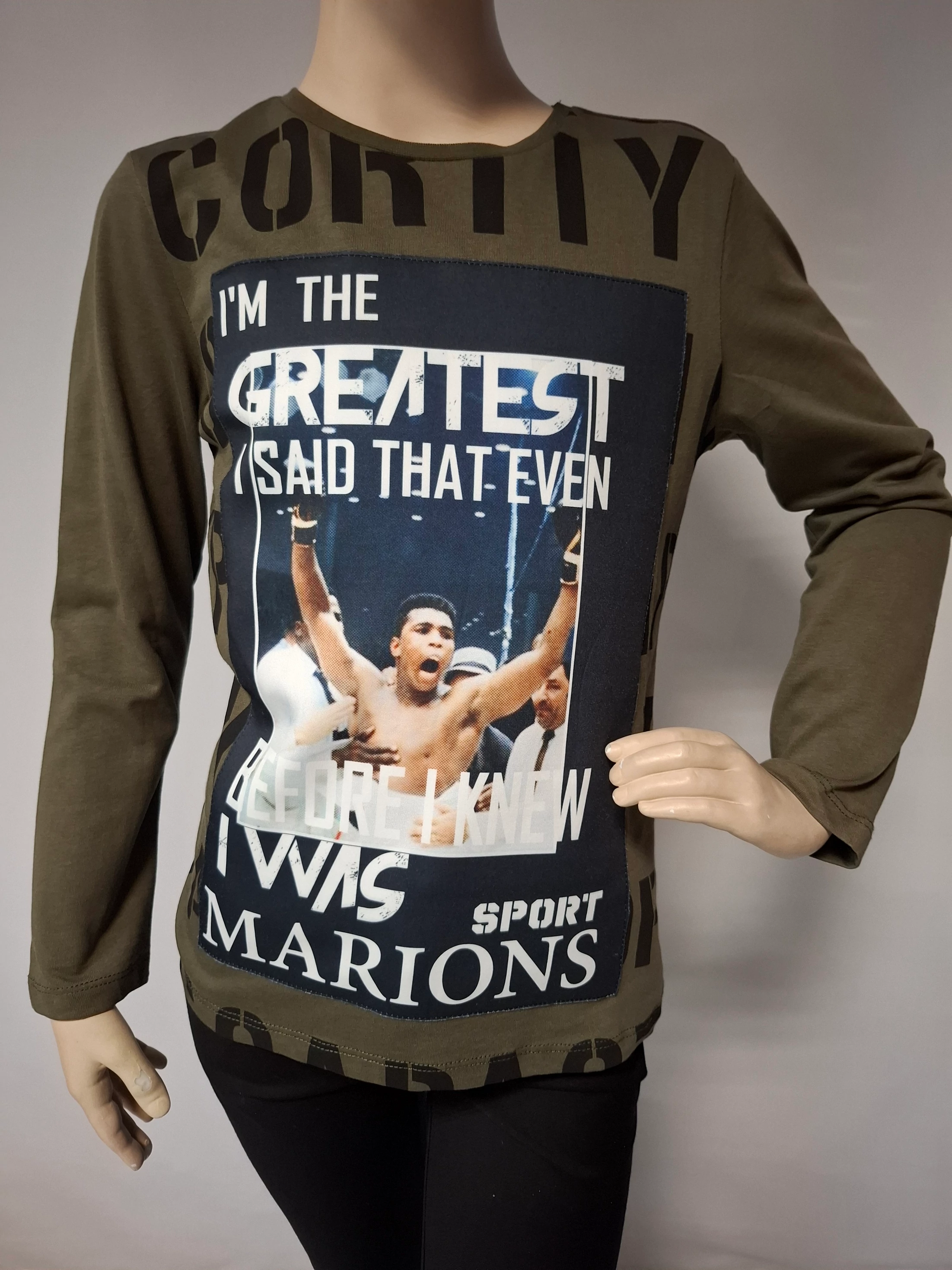 Khaki színű, hosszú ujjú fiú póló rugalmas pamutból, menő mintával – tökéletes választás az őszi napokra. Kényelmes viselet, divatos megjelenés, ideális iskolába, hétvégi programokra vagy családi eseményekre.