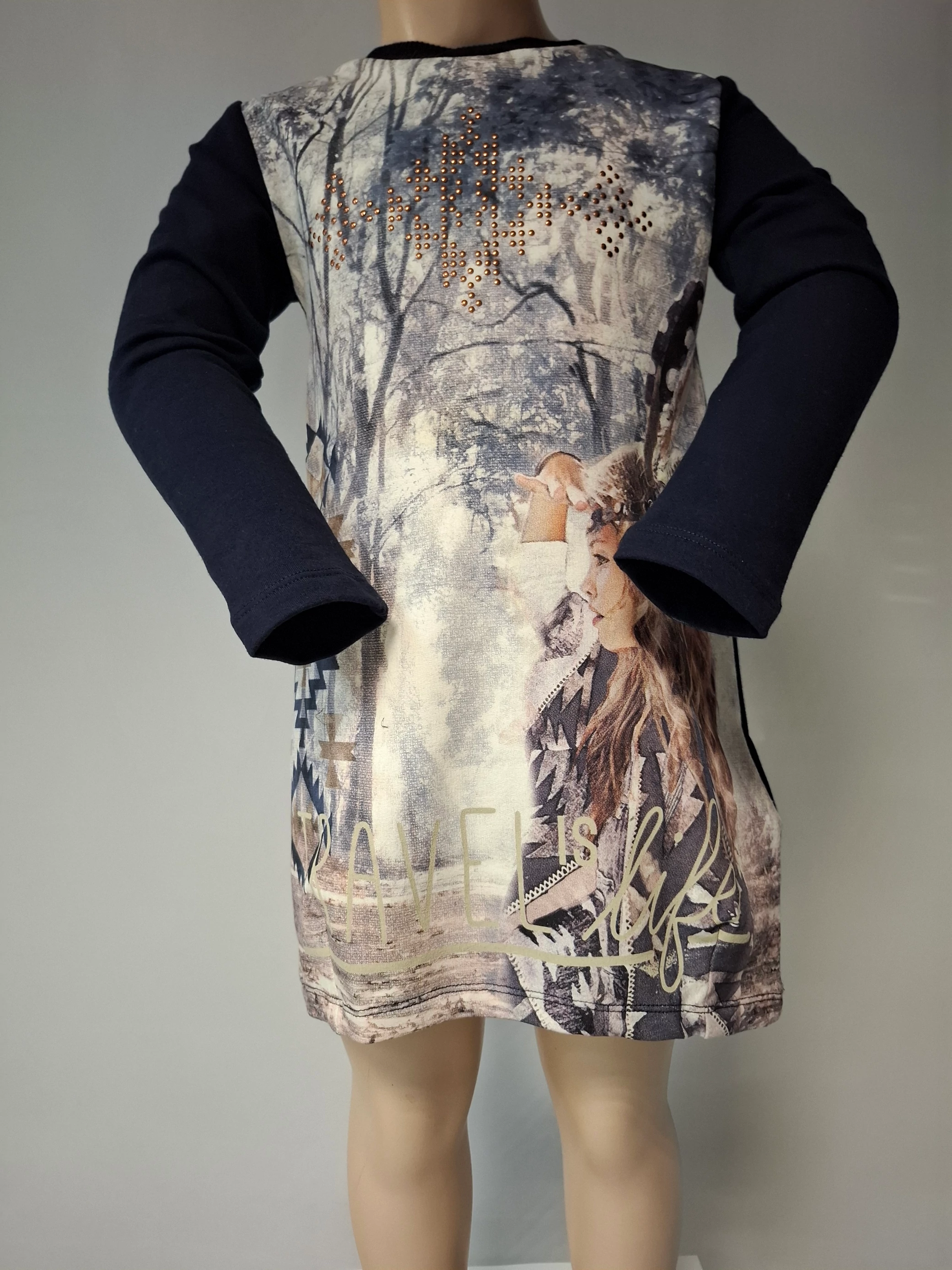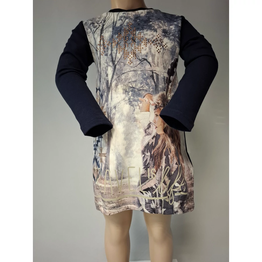 Mayoral hosszú ujjú bébi kislány ruha sötétkék színben, finom pamut anyagból. Elegáns megjelenés és kényelmes viselet ünnepi alkalmakra, családi eseményekre vagy akár az óvodai mindennapokra. | |